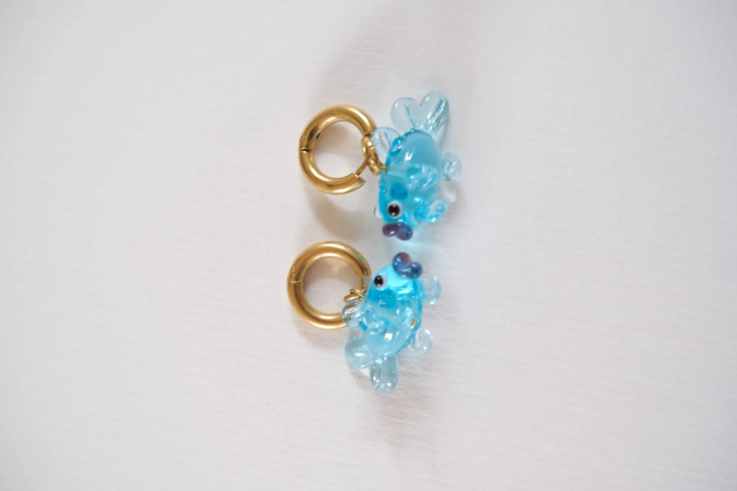 Bijoux Verre › Two little fishies Image 1 of 2 Image 2 of 2 Two little fishies £39.99 Glass blue birdies with our tarnish free waterproof gold hoops. Quantity: Add To Cart Added! Glass blue birdies with our tarnish free waterproof gold hoops.